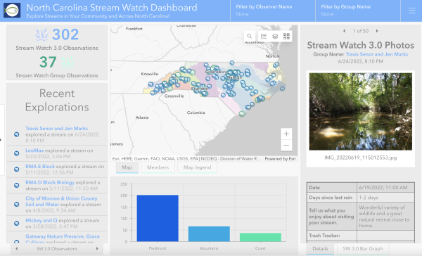 NC Stream Watch offers an easy to use interface and map to share and view visual observations about NC water resources. Anyone can participate.